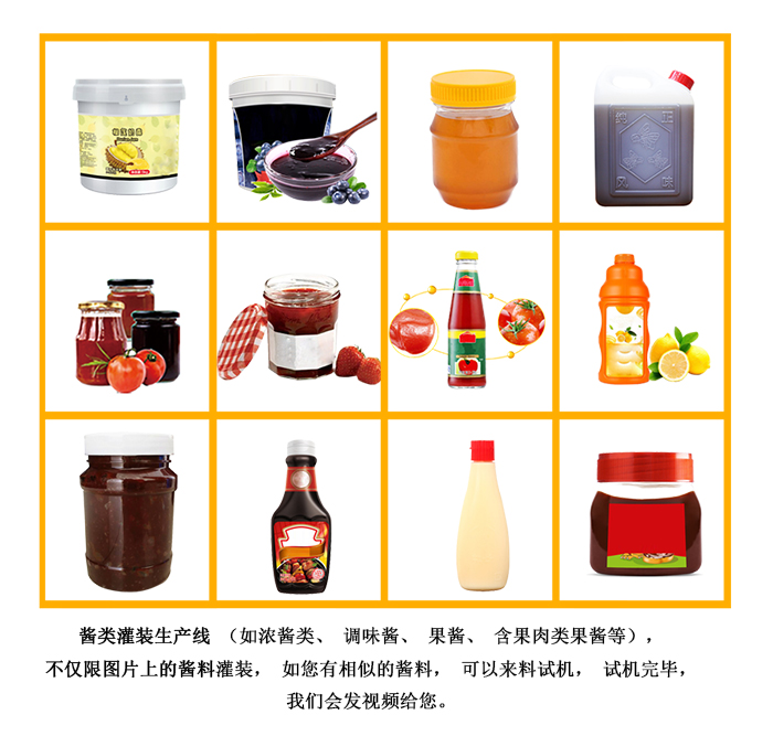 醬料灌裝機,整機采用304不銹鋼,造型大方、美觀;控制系統(tǒng)采用進口電器組件,操作簡單、方便;該醬料灌裝機還可灌裝液體、濃醬類物料,如油類、果汁、果醬等;可用于各種玻璃瓶、塑料瓶、PET罐等。醬料灌裝機特點: