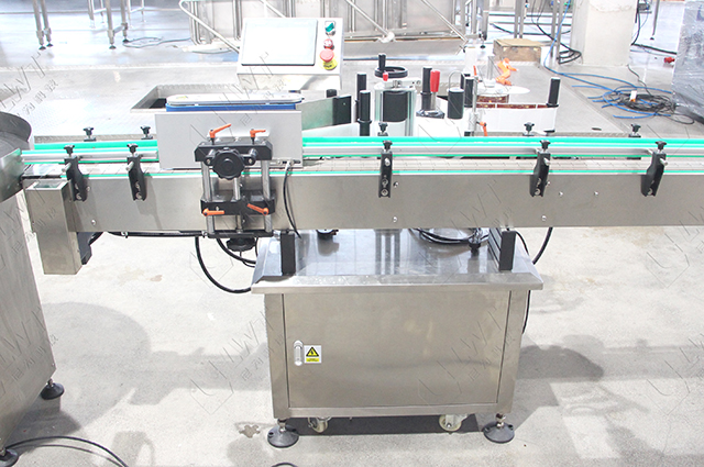 貼標(biāo)機(jī)主要由SUS304底盤、輸送帶、瓶子分離器、海綿輪、貼標(biāo)頭、頭部調(diào)節(jié)等組成。采用西門子PLC、觸摸屏、伺服電機(jī)作為主要部件,控制裝置高速運(yùn)行。