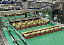 鼓泡清洗-預(yù)煮—振動瀝水——固體物灌裝——液體灌裝——封口機(jī)——實罐清洗——稱重檢測——自動封箱