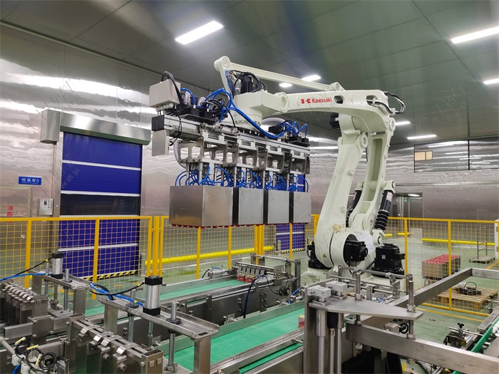 機(jī)器人碼垛機(jī)是機(jī)電一體化高新技術(shù)產(chǎn)品??砂凑找蟮木幗M方式和層數(shù),完成對(duì)料袋、膠塊、箱體等各種產(chǎn)品的碼垛。
