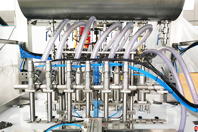 這臺設(shè)備是8頭灌裝機(jī),一般我們的灌裝頭數(shù)量視產(chǎn)量而定,直線式的建議4~12頭,否則灌裝速度反而達(dá)不到預(yù)期。