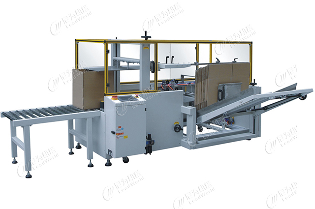 開箱機一般有立式和臥式兩種,立式開箱機工序分為自動開箱(站立式)、成型、下底折曲、底部膠帶粘貼,然后再放入物料封口,開箱速度大概是8-12箱/分;臥式開箱機則是自動開箱(側(cè)臥式)、成型,先將物料側(cè)推至箱子內(nèi)部再前后封口,開箱速度大概是25-28箱/分。