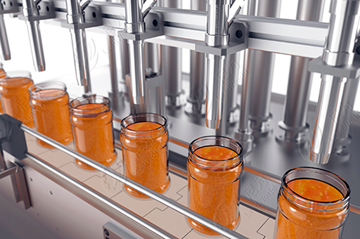 全自動(dòng)濃醬灌裝機(jī)被應(yīng)用于醬類、食品、日化等,可以灌裝辣醬、番茄醬、蜂蜜、果醬、含果肉飲料等。采用伺服控制,計(jì)量精度高,運(yùn)行穩(wěn)定,物料不會(huì)噴出。