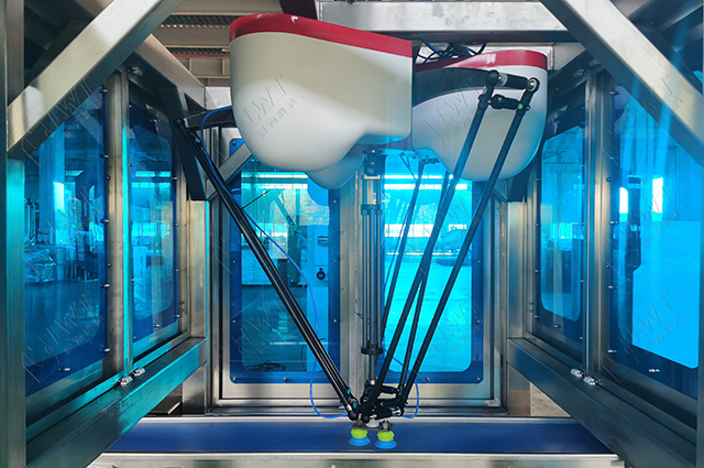 裝箱機(jī)采用并聯(lián)機(jī)器人,具有三維空間 XYZ 平動(dòng)和繞 Z 軸旋轉(zhuǎn)的作業(yè)特點(diǎn),擁有速度快、可靠性高、易用性強(qiáng)、維護(hù)成本低等優(yōu)勢。