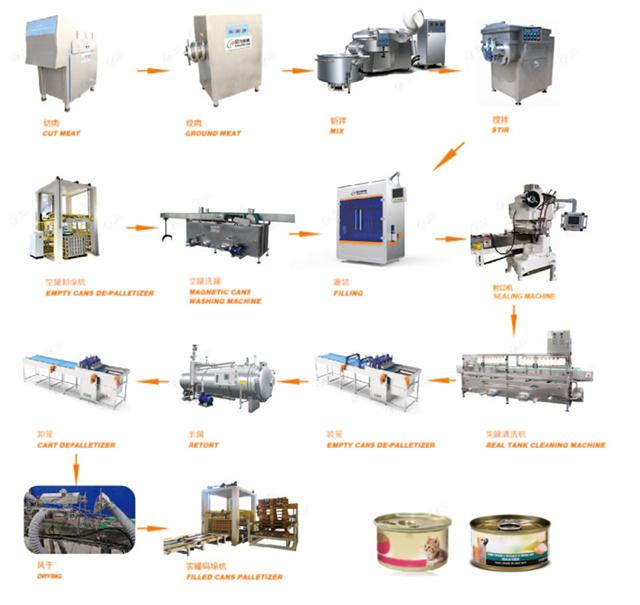 寵物罐頭生產(chǎn)線大致流程